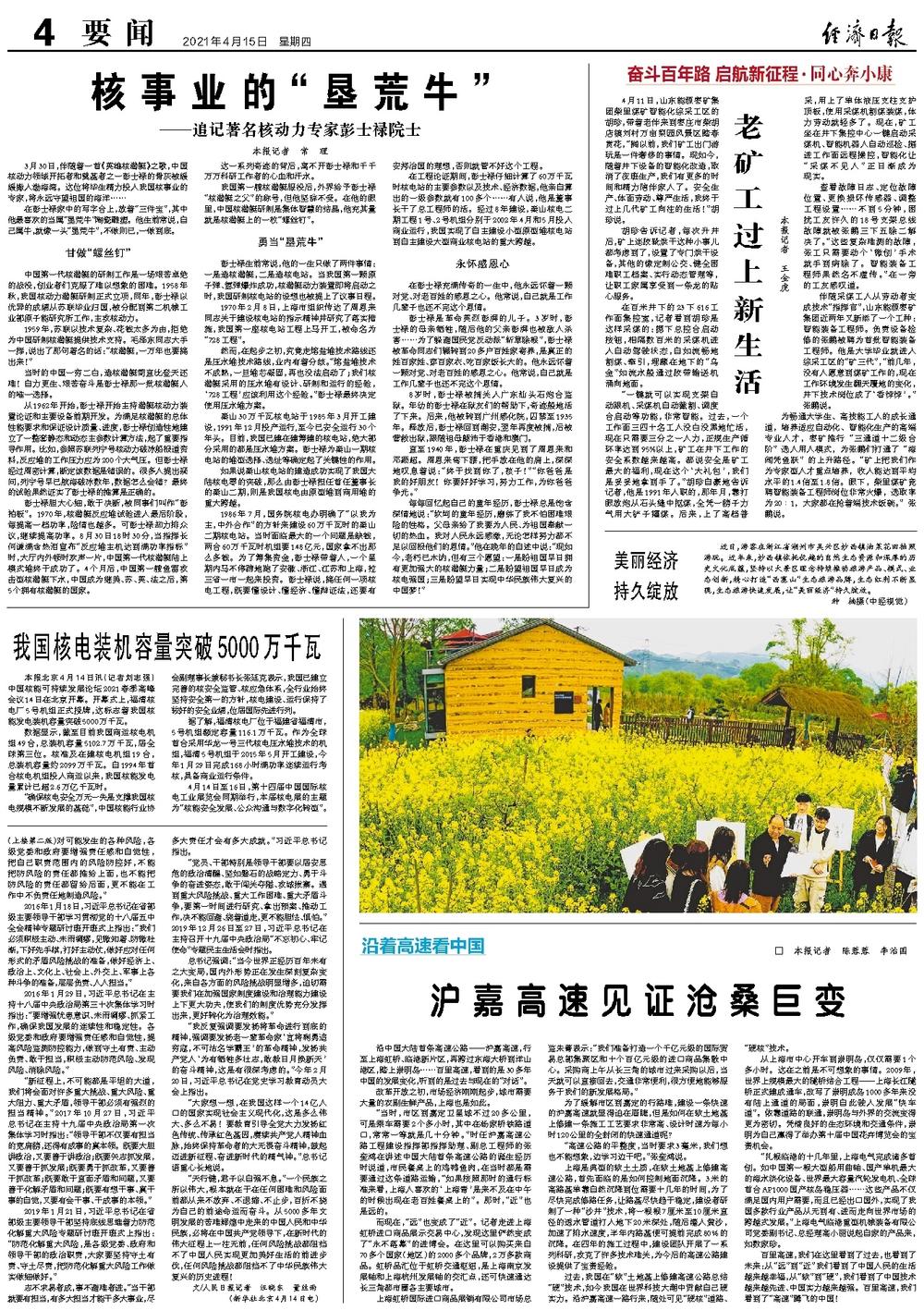 4月11日,山东能源枣矿集团柴里煤矿智能化综采工区的胡珍,带着老伴来到枣庄市柴胡店镇刘村万亩梨园风景区踏春赏花,“搁以前,我们矿工出门游玩是一件奢侈的事情。现如今,随着井下设备的智能化改造,取消了夜班生产,我们有更多的时间和精力陪伴家人了。安全生产、体面劳动、尊严生活,我终于过上几代矿工向往的生活!”胡珍说。