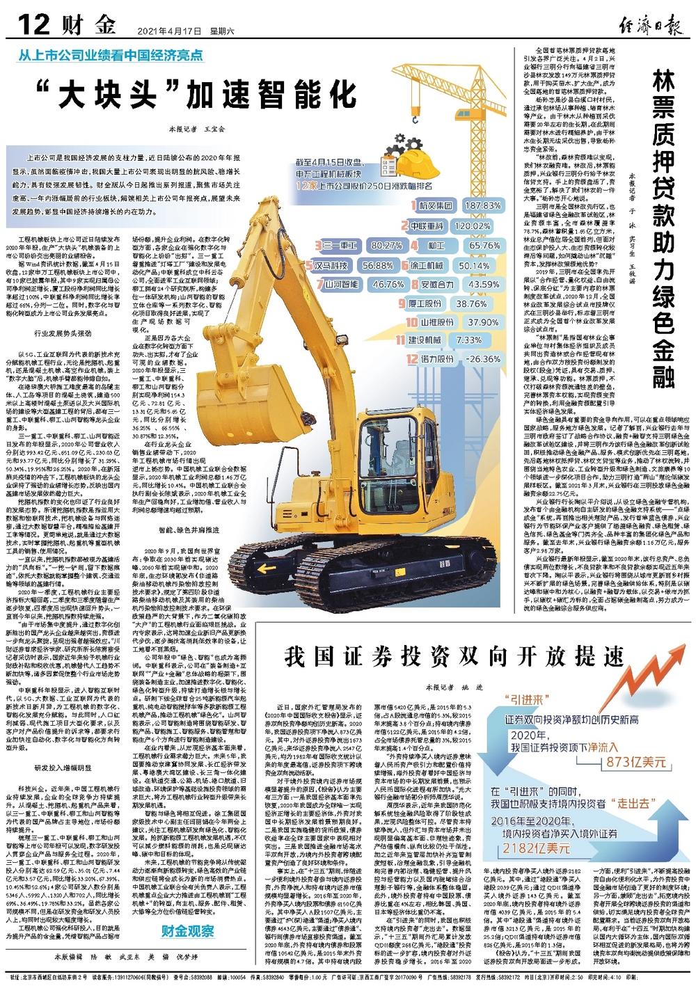 兴业银行最新年报显示,截至2020年末,该行总资产、总负债实现两位数增长,不良贷款率和不良贷款余额实现近五年来首次下降。陶以平表示,兴业银行将围绕从城市更新到乡村振兴不断扩展的绿色场景,完善绿色金融供给体系,特别是以碳达峰和碳中和为核心,以融资+融智为载体,以交易+做市为抓手,以碳权+碳汇为标的,全面占据碳金融制高点,努力成为一流的绿色金融综合服务供应商。