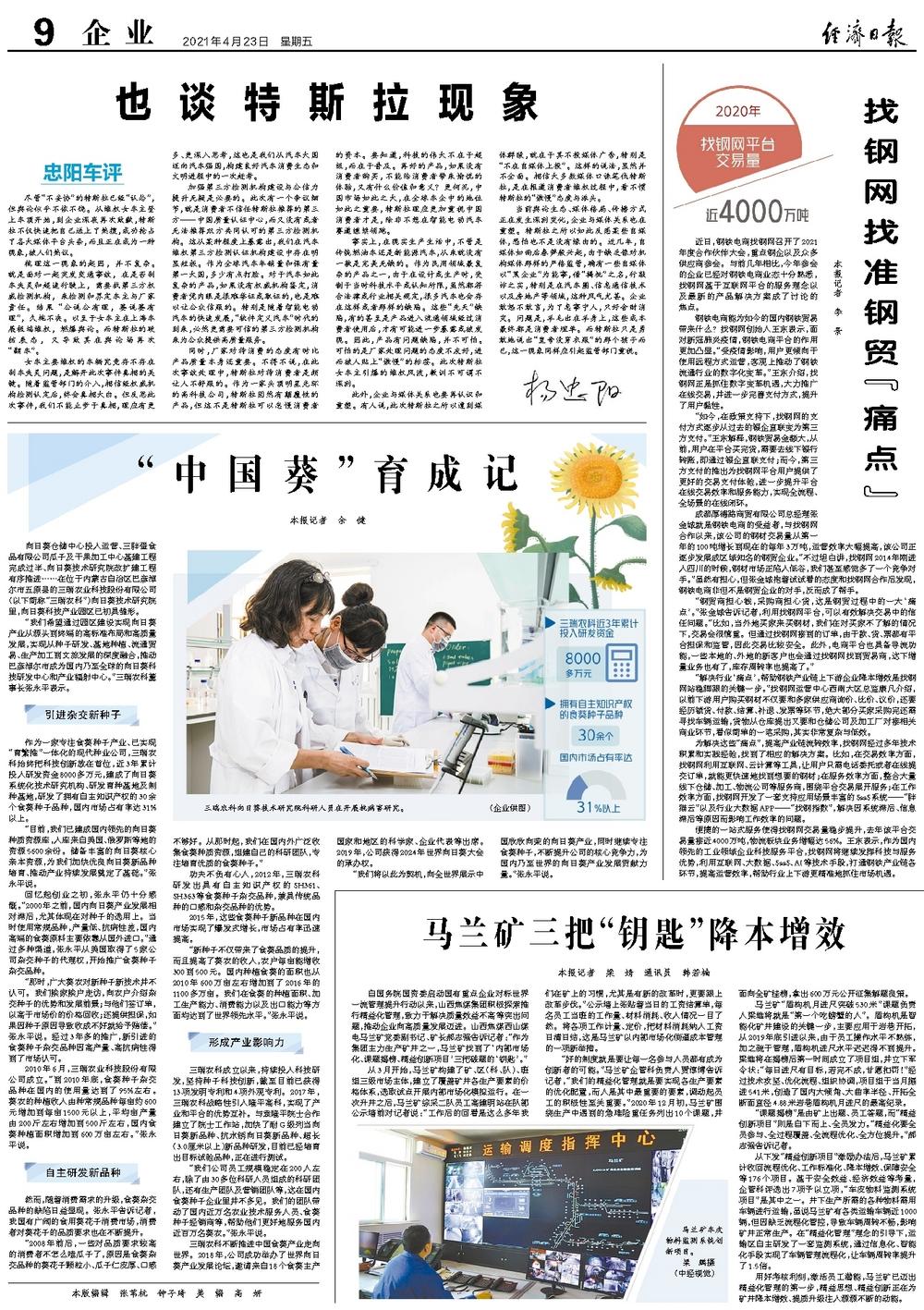 “我们公司员工规模稳定在200人左右,除了由30多位科研人员组成的科研团队,还有生产团队及营销团队等,这在国内食葵种子企业里并不多见。我们的团队带动了国内近万名农业技术服务人员、食葵种子经销商等,帮助他们更好地服务国内近百万名葵农。”张永平说。