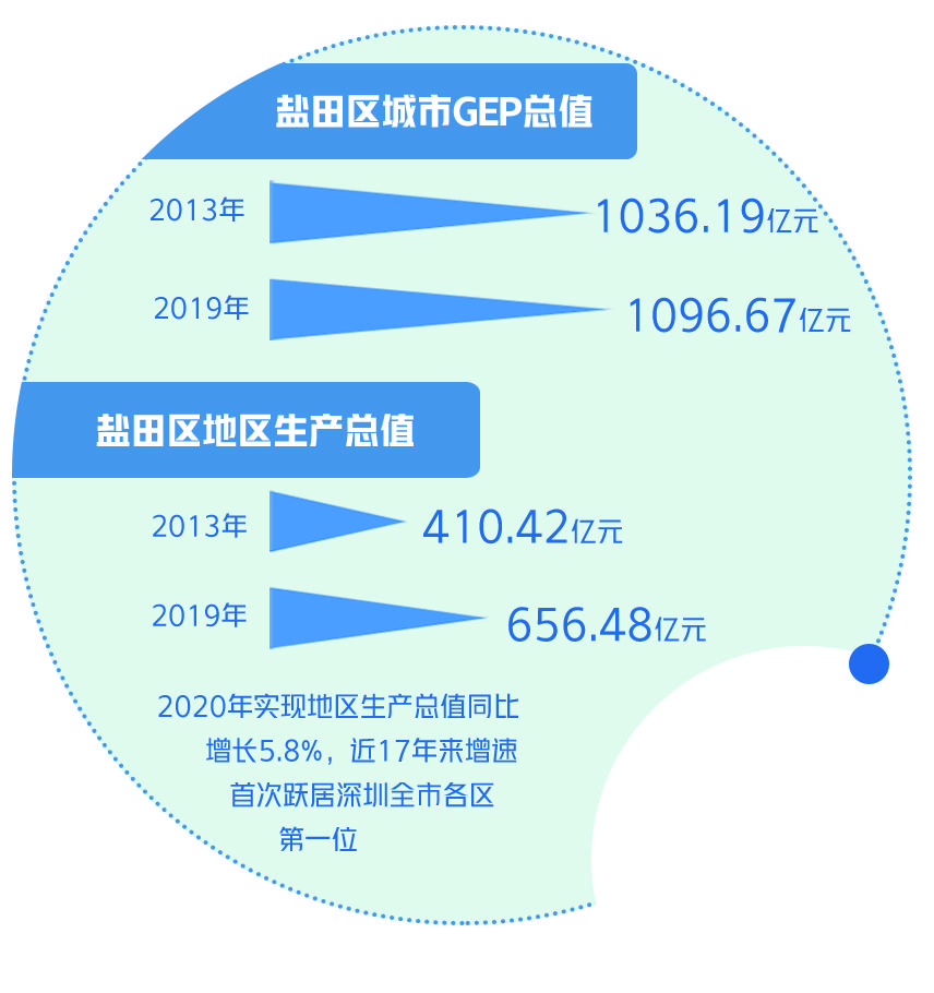 从盐田区的实践来看,构建城市GEP核算体系,有力助推了生态文明与经济社会高度融合发展。盐田区委书记陈清告诉记者,2020年盐田区实现地区生产总值同比增长5.8%,近17年来增速首次跃居深圳全市各区第一名,真正实现了“产业兴盐”与“绿色发展”相互促进、相得益彰。