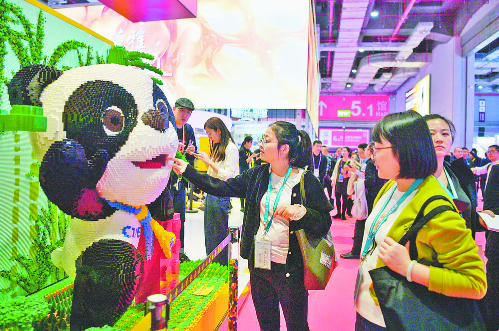 图③ 第二届进博会科技生活展区,乐高版的“进宝”吸引参观者驻足。 本报记者 高兴贵摄