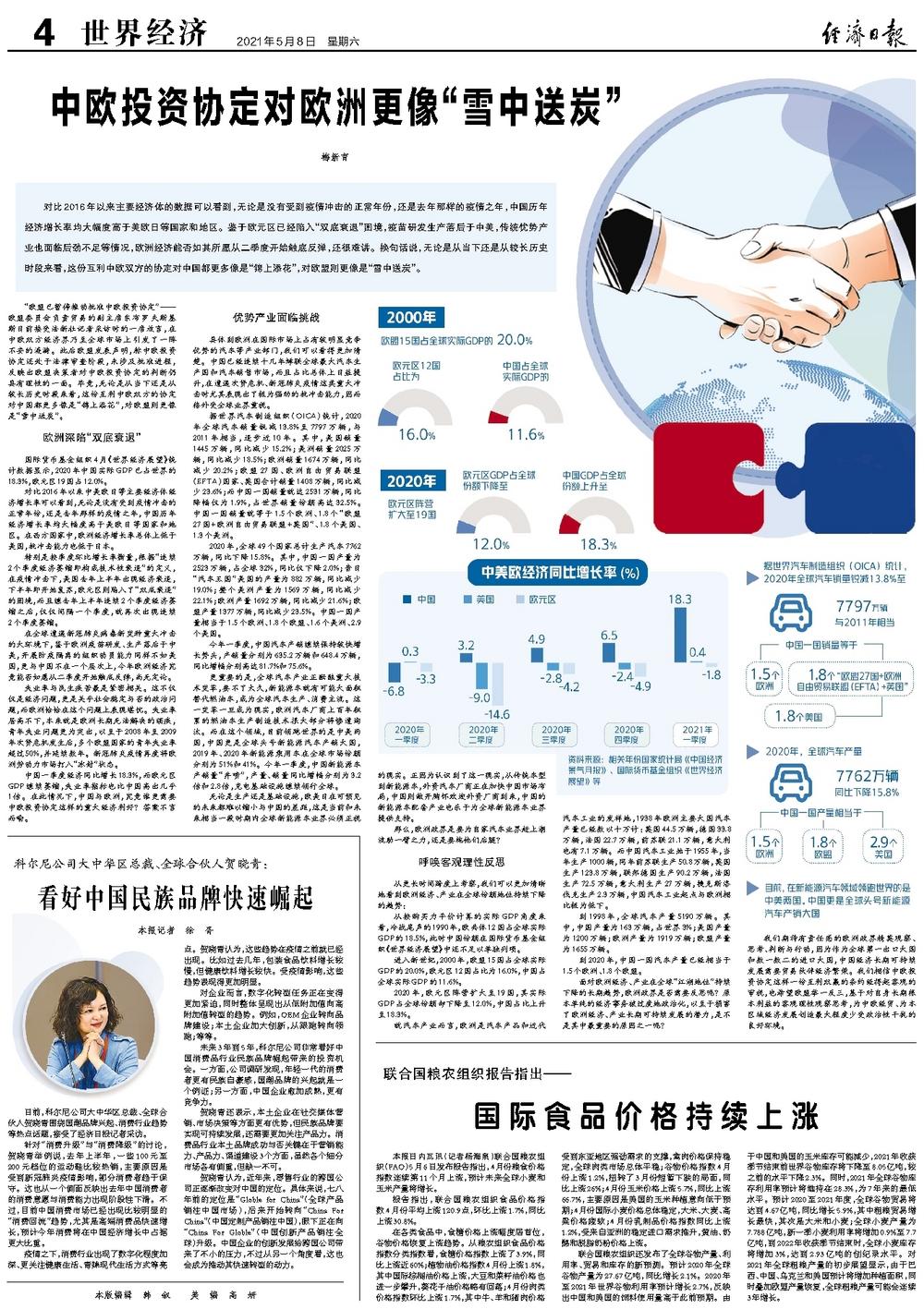 更重要的是,全球汽车产业正酝酿重大技术变革,要不了太久,新能源车就有可能大面积替代燃油车,成为全球汽车生产、消费主流。这一变革一旦成为现实,欧洲汽车厂商上百年积累的燃油车生产制造技术很大部分将惨遭淘汰。而在这个领域,目前领跑世界的是中美两国,中国更是全球头号新能源汽车产销大国,2019年、2020年新能源乘用车在全球市场份额分别为51%和41%。今年一季度,中国新能源车产销量“井喷”,产量、销量同比增幅分别为3.2倍和2.8倍,充电基础设施继续领行全球。