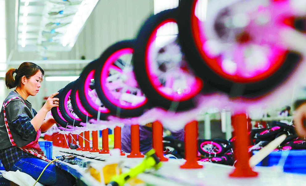 ②广宗县舒安奇婴儿用品有限公司,员工在组装童车。该县现有自行车、童车及婴童用品规模企业达260余家,产品畅销海内外。
