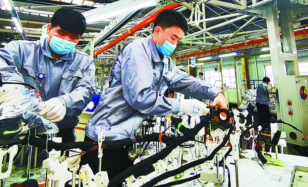 ③三河经济开发区的廊坊莱尼线束系统有限公司,员工在为北京奔驰生产线束产品。 本报记者 陈发明摄