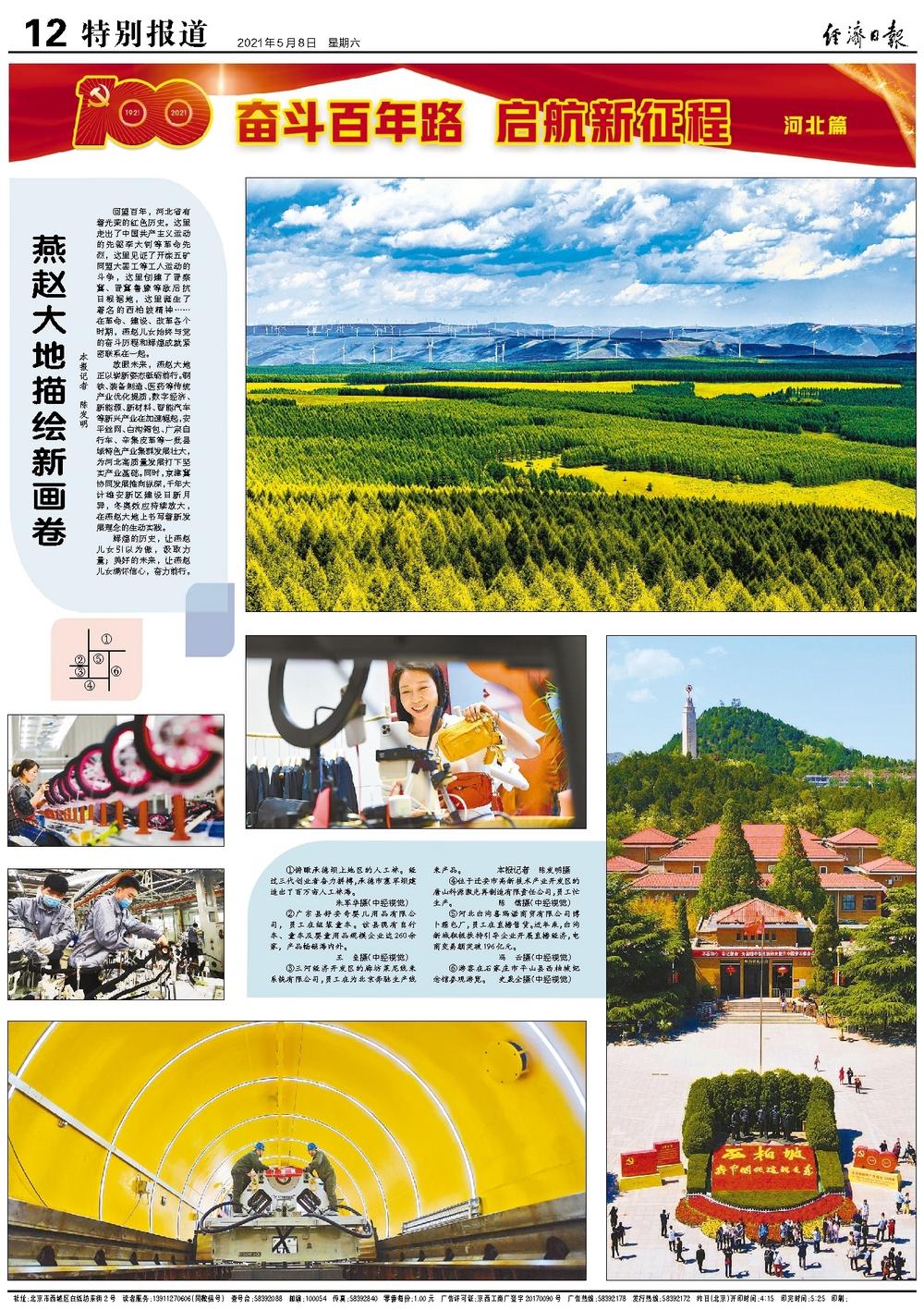 回望百年,河北省有着光荣的红色历史。这里走出了中国共产主义运动的先驱李大钊等革命先烈,这里见证了开滦五矿同盟大罢工等工人运动的斗争,这里创建了晋察冀、晋冀鲁豫等敌后抗日根据地,这里诞生了著名的西柏坡精神……在革命、建设、改革各个时期,燕赵儿女始终与党的奋斗历程和辉煌成就紧密联系在一起。 放眼未来,燕赵大地正以崭新姿态砥砺前行。钢铁、装备制造、医药等传统产业优化提质,数字经济、新能源、新材料、智能汽车等新兴产业在加速崛起,安平丝网、白沟箱包、广宗自行车、辛集皮革等一批县域特色产业集群发展壮大,为河北高质量发展打下坚实产业基础。同时,京津冀协同发展推向纵深,千年大计雄安新区建设日新月异,冬奥效应持续放大,在燕赵大地上书写着新发展理念的生动实践。 辉煌的历史,让燕赵儿女引以为傲,汲取力量;美好的未来,让燕赵儿女满怀信心,奋力前行。