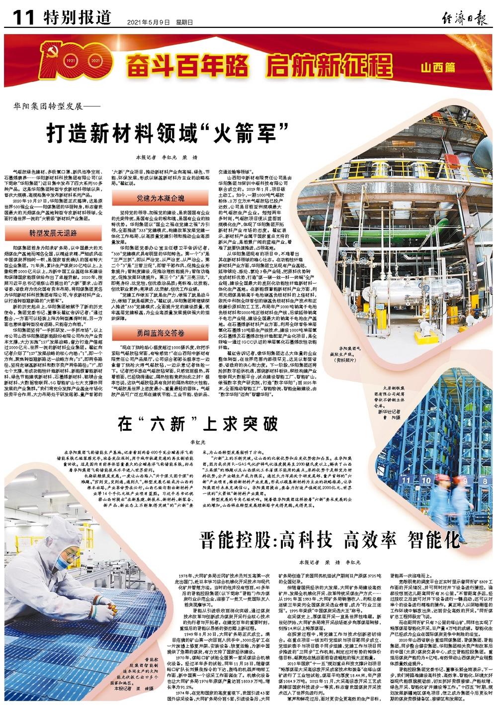 阳煤集团前身为阳泉矿务局,以中国最大的无烟煤生产基地而闻名全国,以精益求精、严细成风在中国煤炭界独树一帜,是国家首批确认的国有特大型企业集团。71年来,累计生产煤炭20亿吨以上,上缴税费2000亿元以上,为新中国工业基础体系建设和保障国家能源供给作出了卓越贡献。2020年,按照习近平总书记视察山西提出的“六新”要求,山西省委、省政府为优化国有资本布局,将阳煤集团更名为华阳新材料科技集团有限公司,专攻新材料产业,以打造转型蹚新路的“火箭军”。