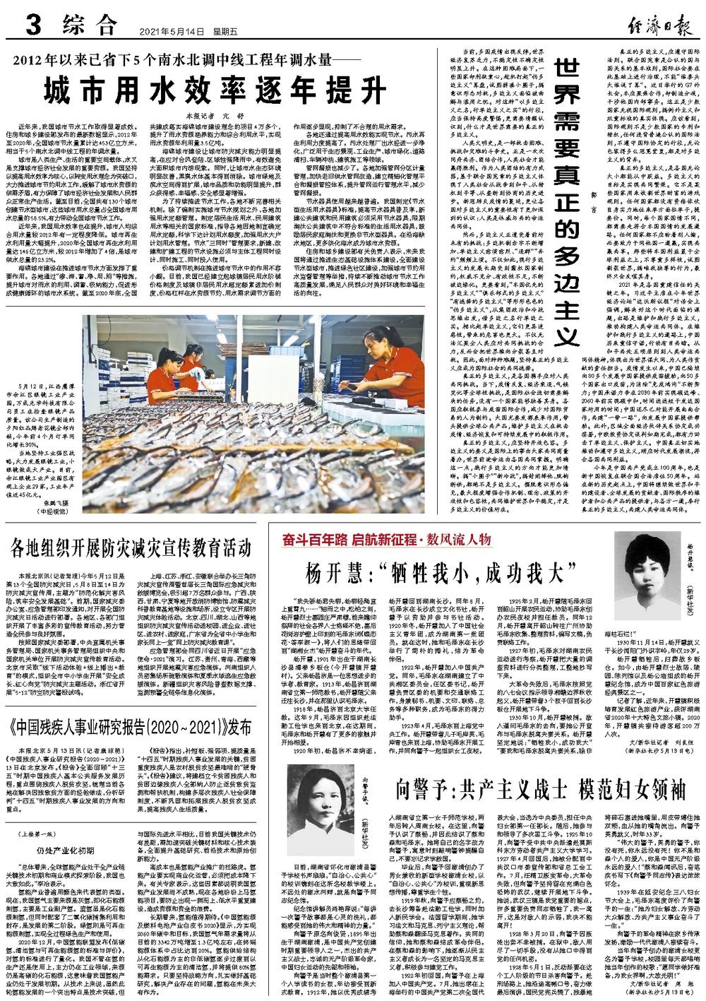 本报北京5月13日讯(记者康琼艳)《中国残疾人事业研究报告(2020~2021)》13日在北京发布。《报告》全面回顾“十三五”时期中国残疾人基本公共服务发展历程,重点围绕残疾人脱贫攻坚,梳理当前各地在解决因残致贫方面的经验做法,分析研判“十四五”时期残疾人事业发展的方向和重点。