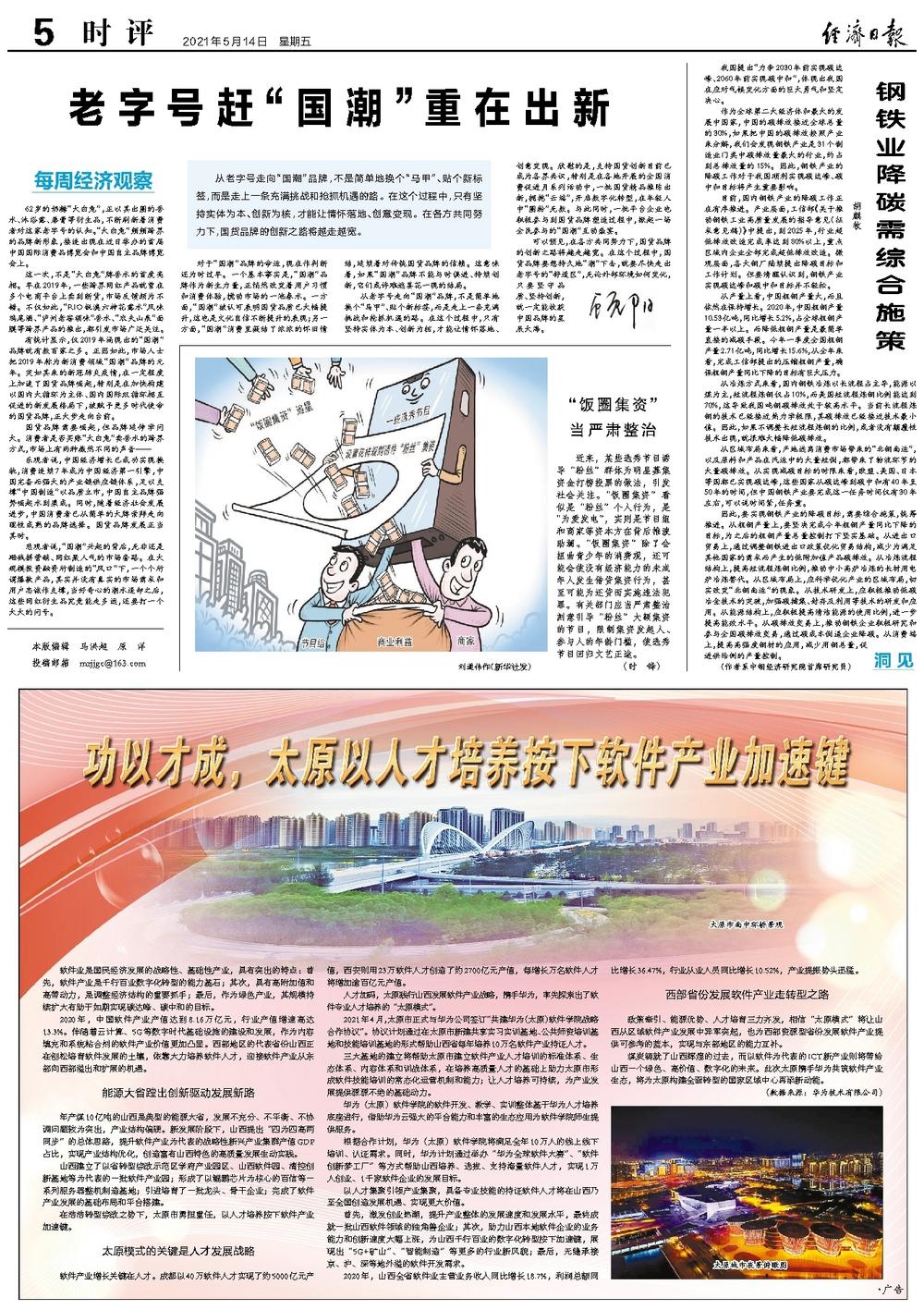 从老字号走向“国潮”品牌,不是简单地换个“马甲”、贴个新标签,而是走上一条充满挑战和抢抓机遇的路。在这个过程中,只有坚持实体为本、创新为核,才能让情怀落地、创意变现。欣慰的是,支持国货创新目前已成为各界共识,特别是在各地开展的全国消费促进月系列活动中,一批国货精品推陈出新,拥抱“云端”,开启数字化转型,在年轻人中“圈粉”无数。与此同时,一批平台企业也积极参与到国货品牌塑造过程中,掀起一场全民参与的“国潮”互动盛宴。
