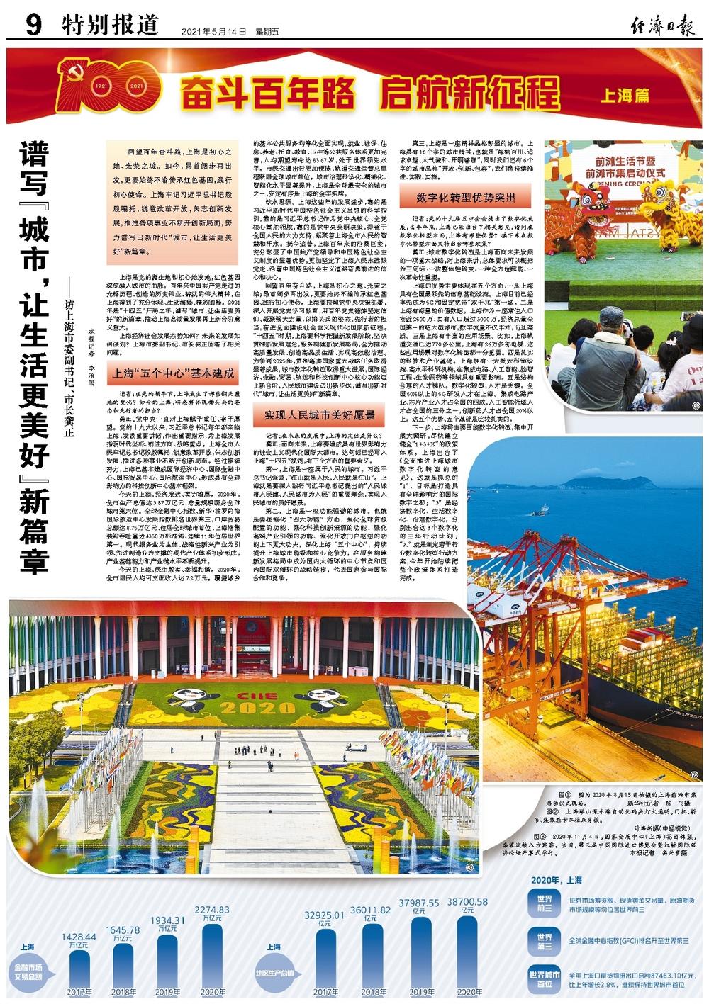 龚正:党中央一直对上海赋予重任、寄予厚望。党的十九大以来,习近平总书记每年都亲临上海,发表重要讲话,作出重要指示,为上海发展指明时代坐标、前进方向、战略重点。上海全市人民牢记总书记殷殷嘱托,锐意改革开放,矢志创新发展,推进各项事业不断开创新局面。经过接续努力,上海已基本建成国际经济中心、国际金融中心、国际贸易中心、国际航运中心,形成具有全球影响力的科技创新中心基本框架。