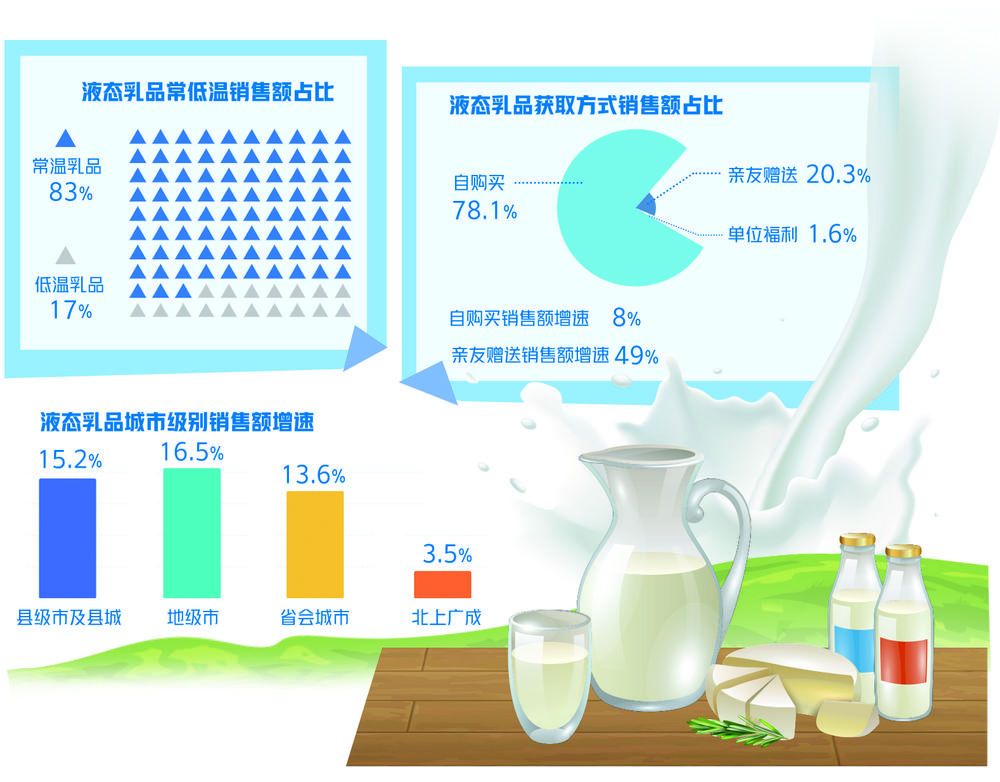 三是消费结构不断完善。在城乡消费结构中,随着交通、物流、通信等基础设施逐步完善,电子商务不断向低线级市场延伸,下沉市场消费潜力逐步释放。在消费渠道结构中,随着消费习惯和消费方式变化,新兴业态和新商业模式持续发展,网购、新零售等便捷型渠道保持良好发展趋势,这促使乳品企业探索更为灵活和便捷的营销方式,不断提升消费者购物体验。