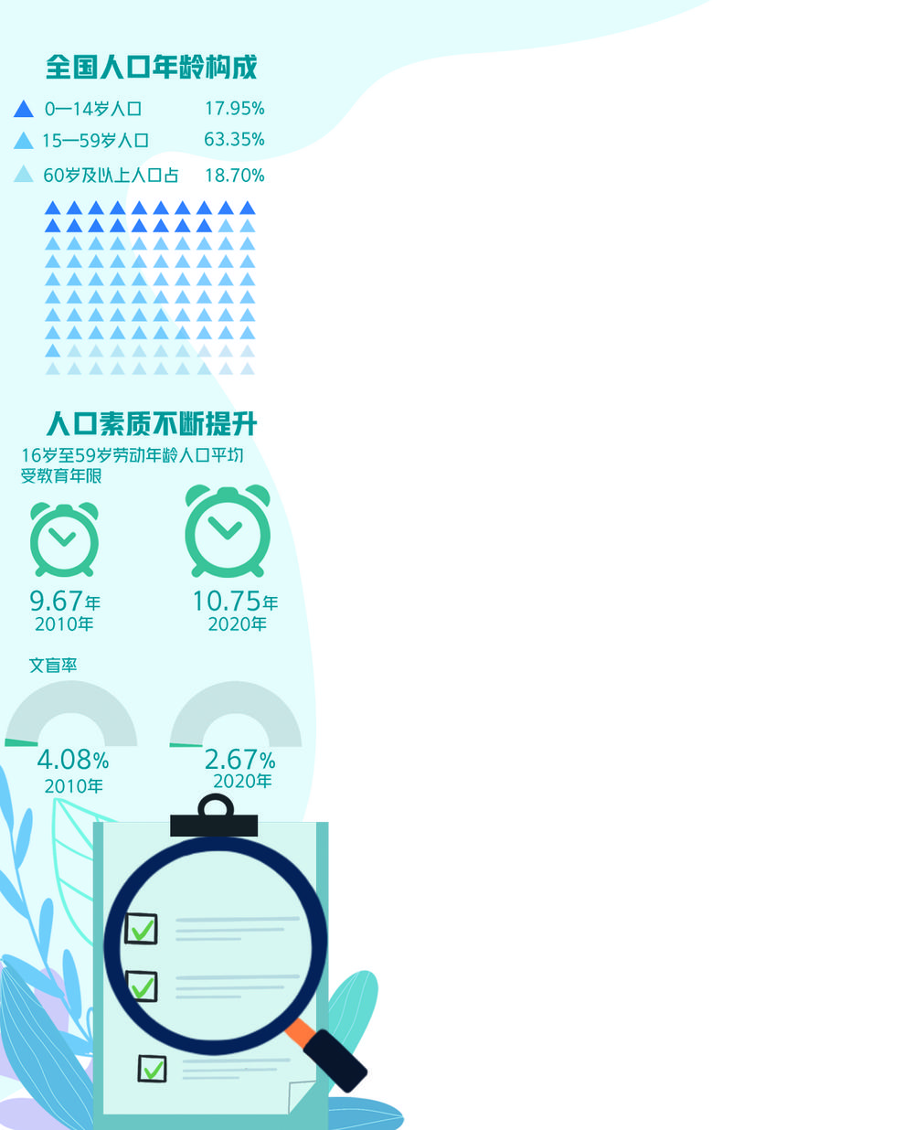 此次普查数据也提供了一些超预期的结果,比如,0至14岁的少儿人口比重较2010年上升了1.35个百分点,虽然有赖于更详细的数据来分析增长的原因,但这一增长可能主要来自于生育政策调整所带来的长期积累的生育意愿释放。此外,性别结构改善,特别是人口受教育水平明显提高,也是值得我们关注的正面因素。比如,16岁至59岁劳动年龄人口平均受教育年限从2010年的9.67年提高至10.75年。这说明我国人口质量和素质不断提升,将为未来经济高质量发展提供重要基础。