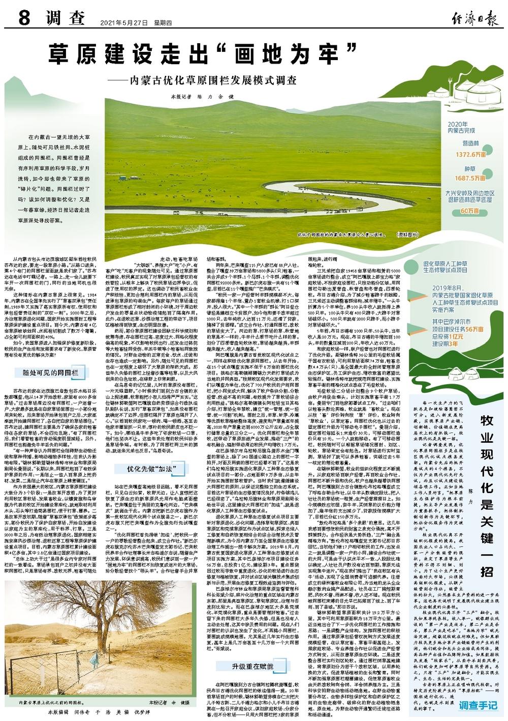 在内蒙古一望无垠的大草原上,随处可见铁丝网、水泥桩组成的网围栏。网围栏曾经是有序利用草原的科学手段,岁月流转,如今却也带来了草原的“碎片化”问题。网围栏过时了吗?该如何调整和优化?又是一年春草绿,经济日报记者走进草原深处寻找答案。