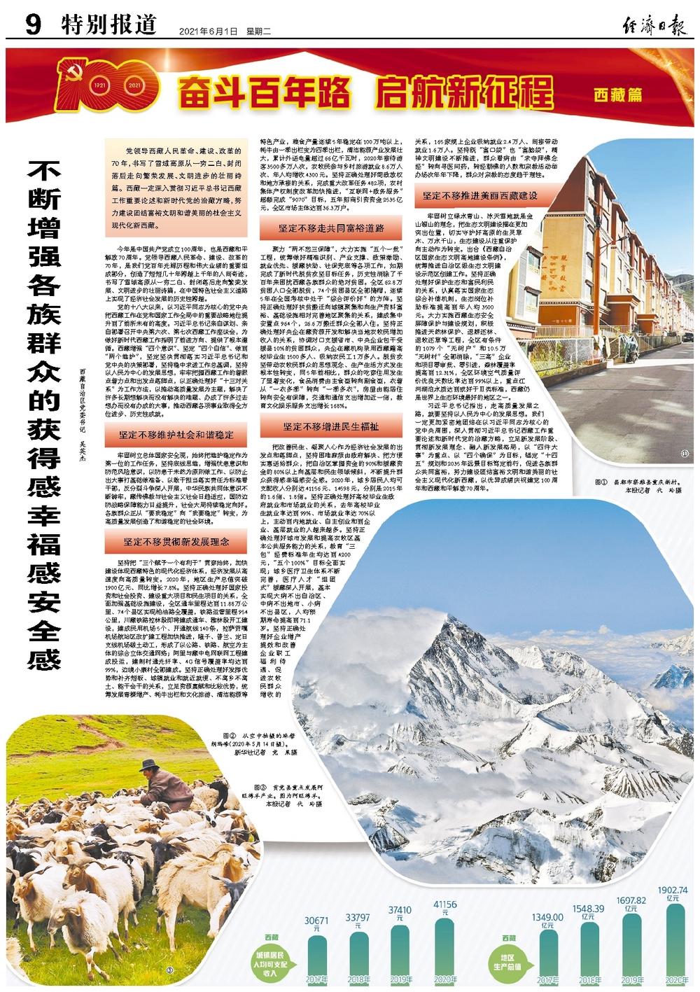 今年是中国共产党成立100周年,也是西藏和平解放70周年。党领导西藏人民革命、建设、改革的70年,是我们党百年光辉历程和伟大业绩的重要组成部分,创造了短短几十年跨越上千年的人间奇迹,书写了雪域高原从一穷二白、封闭落后走向繁荣发展、文明进步的壮丽诗篇,在中国特色社会主义道路上实现了经济社会发展的历史性跨越。