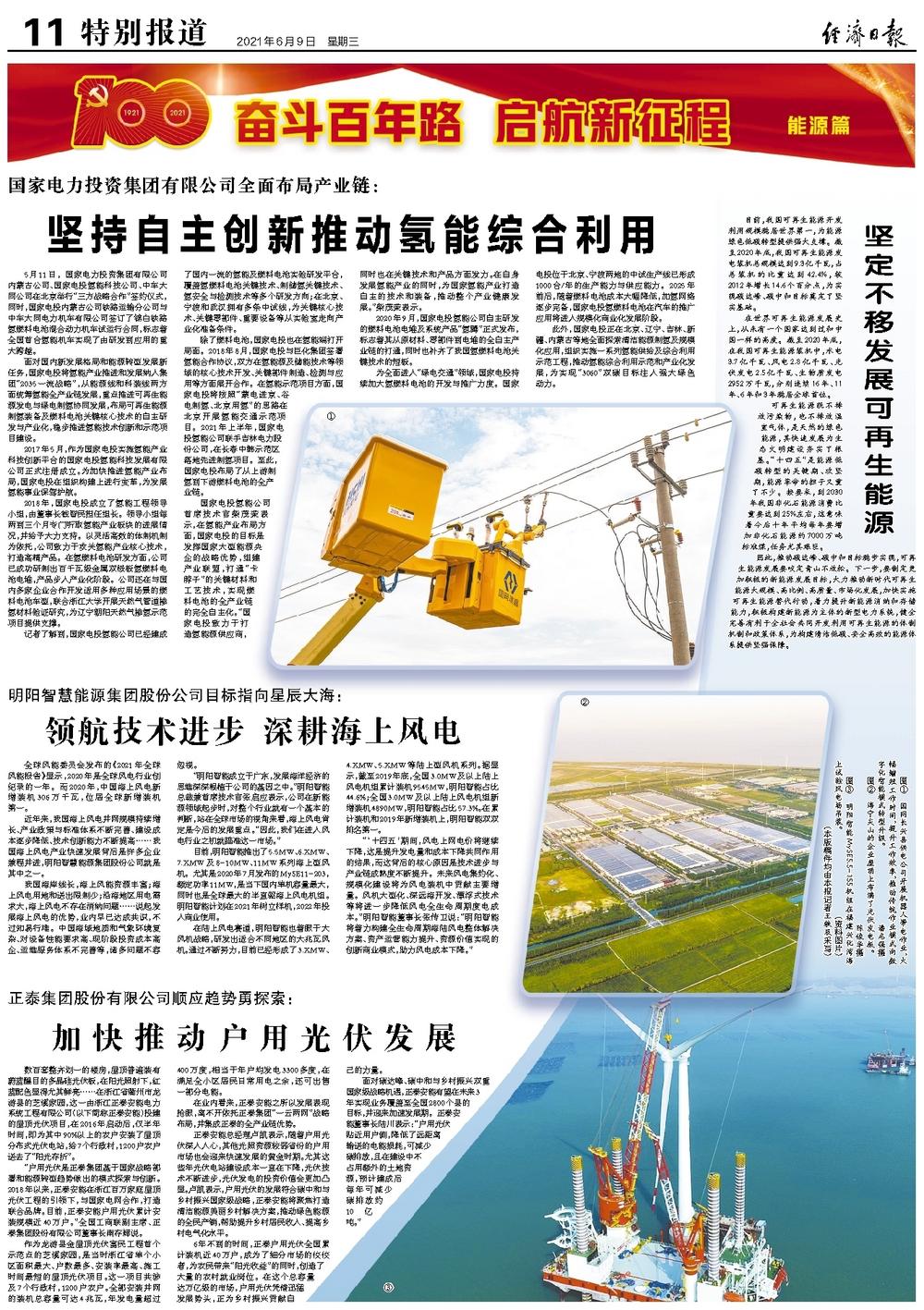 2018年,国家电投成立了氢能工程领导小组,由董事长钱智民担任组长。领导小组每两到三个月专门听取氢能产业板块的进展情况,并给予大力支持。以灵活高效的体制机制为依托,公司致力于攻关氢能产业核心技术,打造高精产品。在氢燃料电池研发方面,公司已成功研制出百千瓦级金属双极板氢燃料电池电堆,产品步入产业化阶段。公司还在与国内多家企业合作开发适用多种应用场景的燃料电池车型,联合浙江大学开展天然气管道掺氢材料验证研究,为辽宁朝阳天然气掺氢示范项目提供支撑。
