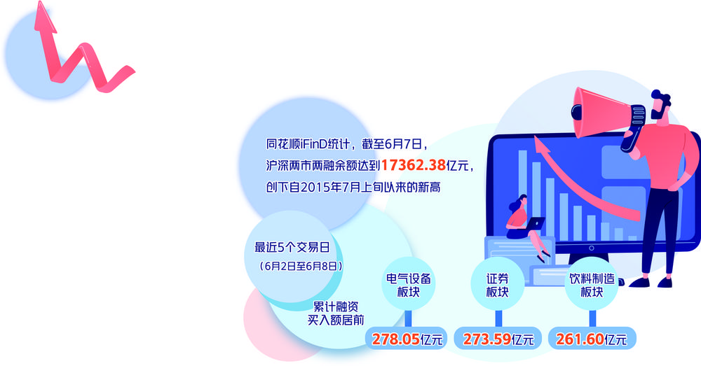 据同花顺iFinD统计,截至6月7日,沪深两市两融余额达到17362.38亿元,创下自2015年7月上旬以来的新高;截至6月8日,融资余额为15857.35亿元,同样创下2015年7月上旬以来的新高。