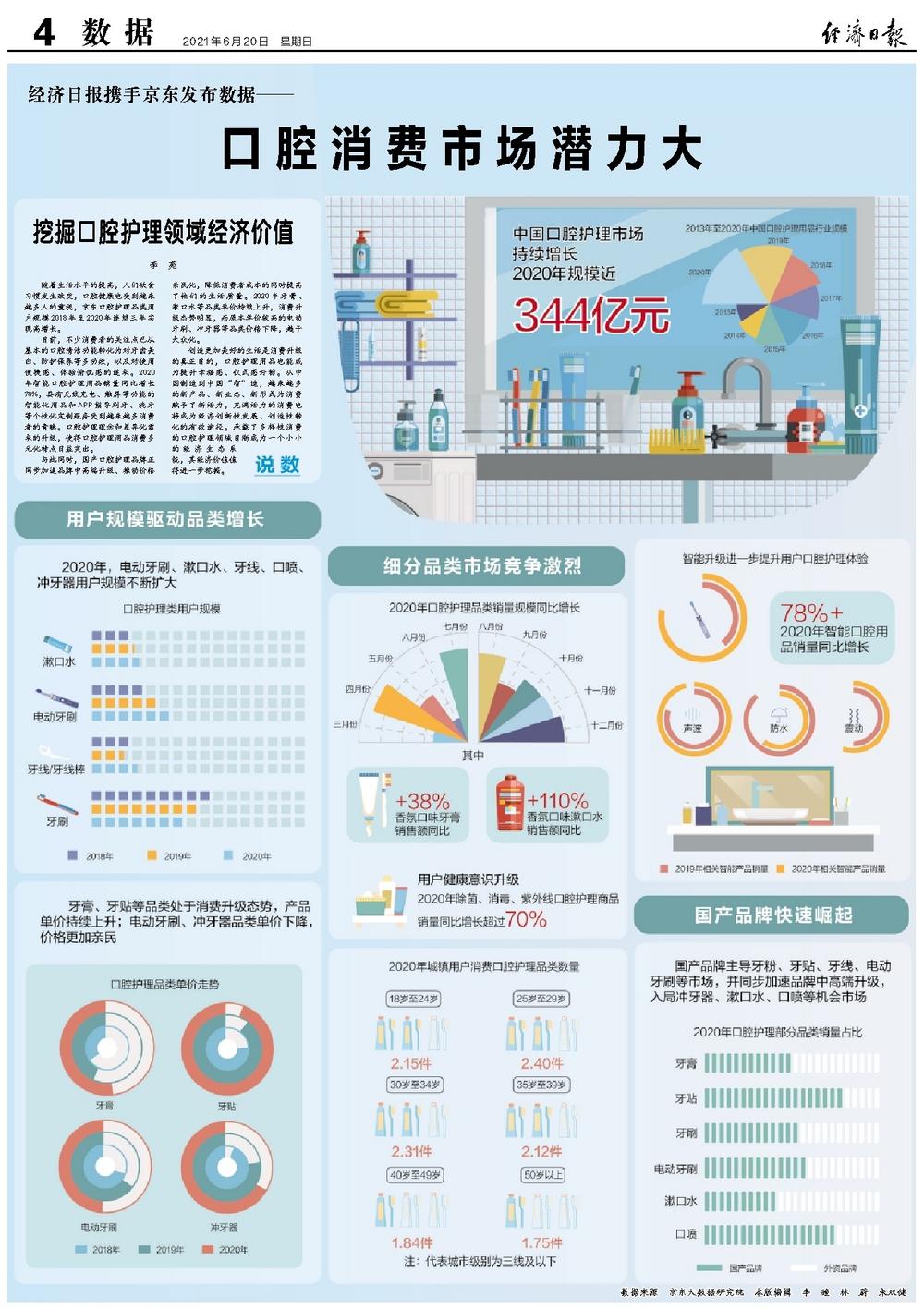 随着生活水平的提高,人们饮食习惯发生改变,口腔健康也受到越来越多人的重视,京东口腔护理品类用户规模2018年至2020年连续三年实现高增长。
