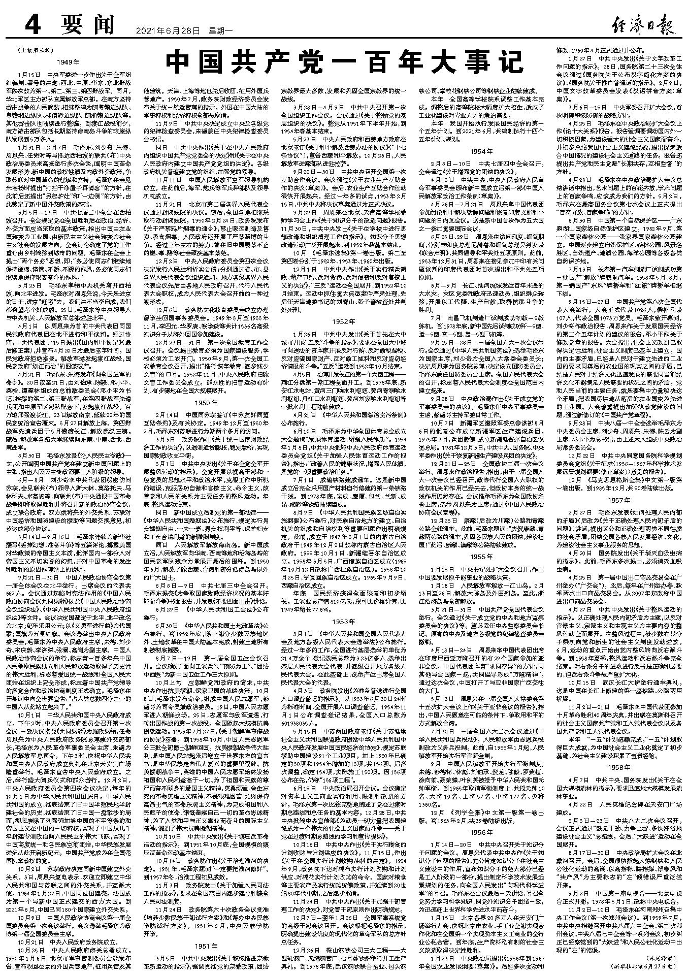 6月 《人民日报》创刊。1949年8月正式成为中共中央机关报。