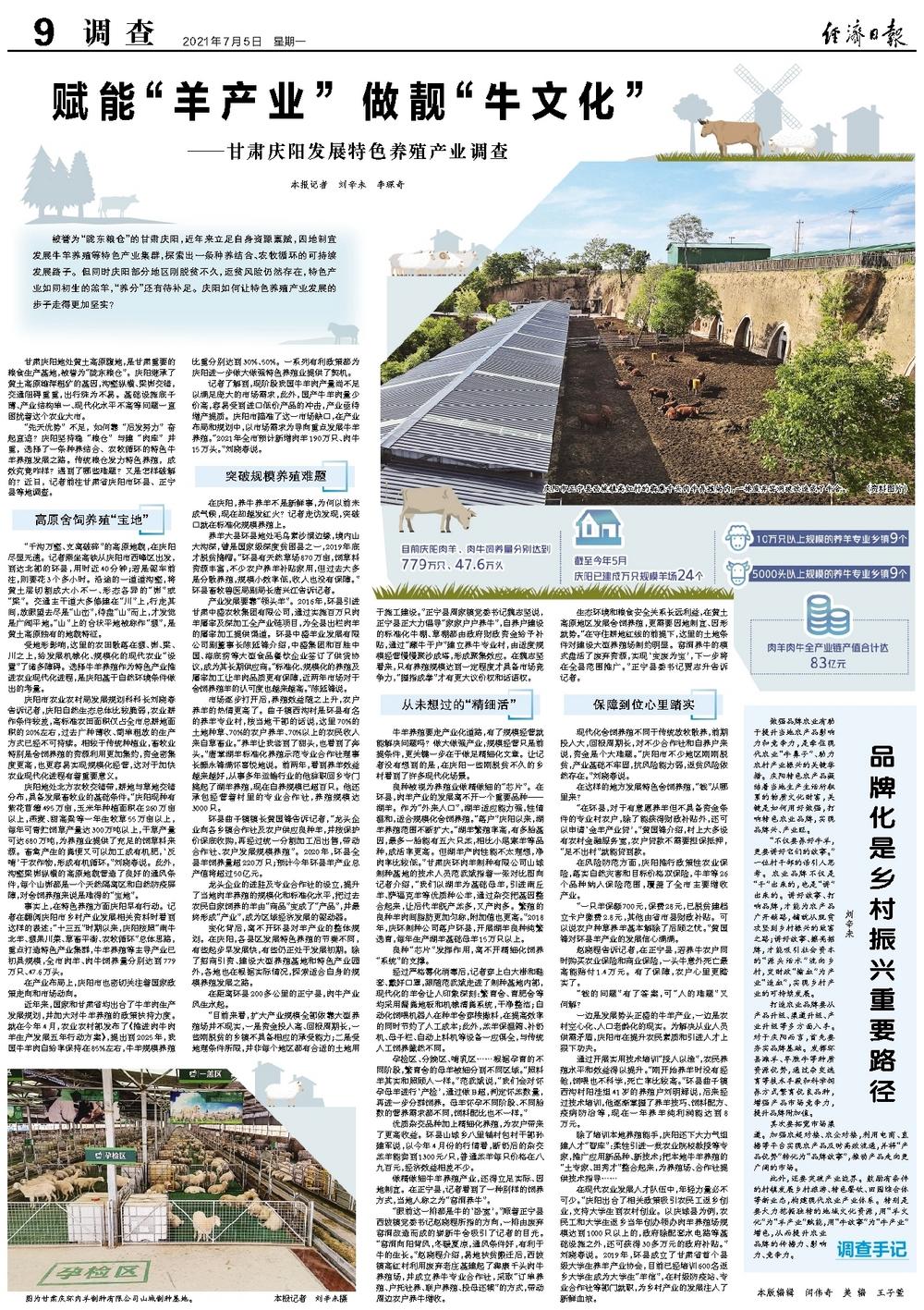 被誉为“陇东粮仓”的甘肃庆阳,近年来立足自身资源禀赋,因地制宜发展牛羊养殖等特色产业集群,探索出一条种养结合、农牧循环的可持续发展路子。但同时庆阳部分地区刚脱贫不久,返贫风险仍然存在,特色产业如同初生的羔羊,“养分”还有待补足。庆阳如何让特色养殖产业发展的步子走得更加坚实?