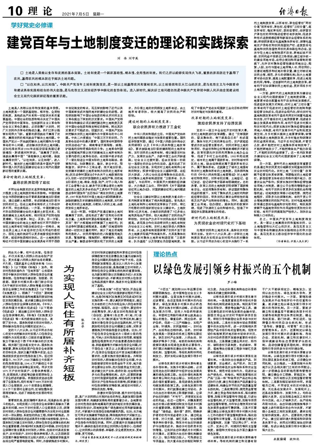 □ “以往知来,以见知隐”。中国共产党百年土地制度演变史,是一部以土地赢得农民和富裕农民、以土地稳固和壮大江山的历史,是马克思主义与中国革命和建设具体实践相结合的伟大创造,是马克思主义政治经济学中国化的生动体现。进入新时代,解决好土地问题仍然是中国共产党带领中国人民开启全面建设社会主义现代化国家新征程的重要议题。