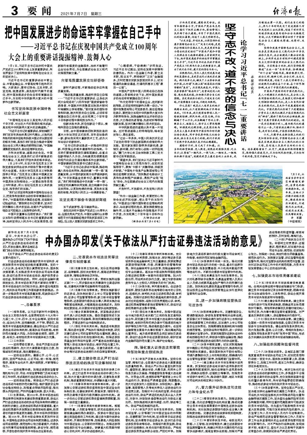 7月1日,习近平总书记在庆祝中国共产党成立100周年大会上发表重要讲话,向世界宣示了坚持和发展中国特色社会主义的坚定决心。