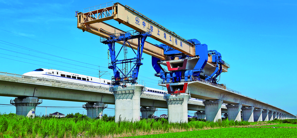 7月14日,江苏太仓,中铁上海工程局南沿江城际铁路施工现场。南沿江城际铁路是沪宁间第二条城际铁路,是长江经济带综合立体交通走廊的重要组成部分,计划于2023年4月建成通车。王 慧摄(中经视觉)