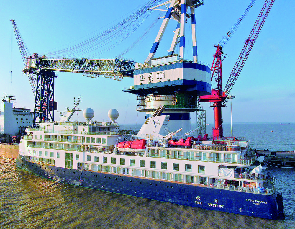 7月18日,极地探险邮轮4号船“海洋探险号”在招商工业江苏海门基地交付启航。“海洋探险号”极地探险邮轮船长104.4米,可承载254人,抗冰等级达1A级标准。许丛军摄(中经视觉)