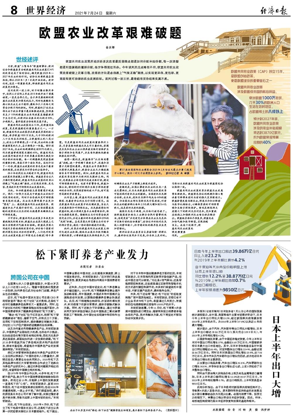 日前,欧盟“三驾马车”欧盟理事会、欧洲议会和欧盟委员会就欧盟共同农业政策(CAP)的改革达成了临时协议,确定欧盟2023年—2027年农业补贴计划。该协议尚需欧盟各国批准,将从2023年1月1日起开始实施。有评论说,这是一项重要成果,将使欧盟共同农业政策更加绿色。
