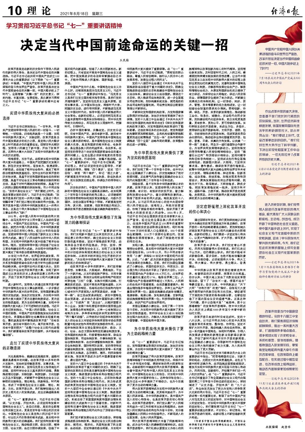 习近平总书记在“七一”重要讲话中庄严宣告,我们实现了第一个百年奋斗目标,在中华大地上全面建成了小康社会,历史性地解决了绝对贫困问题,正在意气风发向着全面建成社会主义现代化强国的第二个百年奋斗目标迈进。