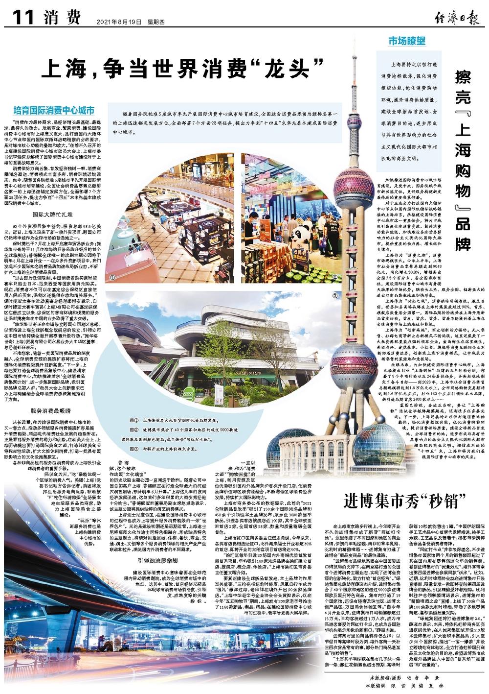 上海要持之以恒打造消费地标载体,强化消费枢纽功能,优化消费购物环境,提升消费供给质量,建设全球新品首发地、全球消费目的地,逐步形成与具有世界影响力的社会主义现代化国际大都市相匹配的商业文明。