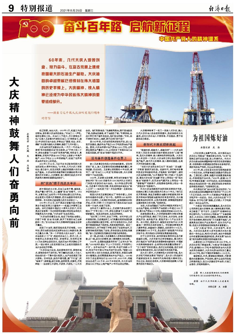 大庆精神培育了一批又一批铁人式队伍,融入几代大庆石油人的血液和骨髓中,形成独特的文化基因,成为大庆石油人不畏艰难、不怕挑战、勇于创新的动力源泉。
