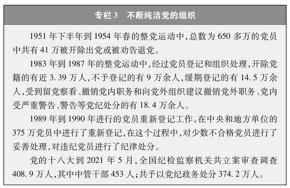 在革命、建设、改革中,中国共产党面临着形形色色的考验。外部世界的各种诱惑,管党治党的松懈松弛,党员思想行为的不良变化,都会对党的肌体造成侵害。党坚决同影响党的先进性、弱化党的纯洁性的各种现象作斗争,不断医治病症,坚决铲除毒瘤,保持肌体健康。