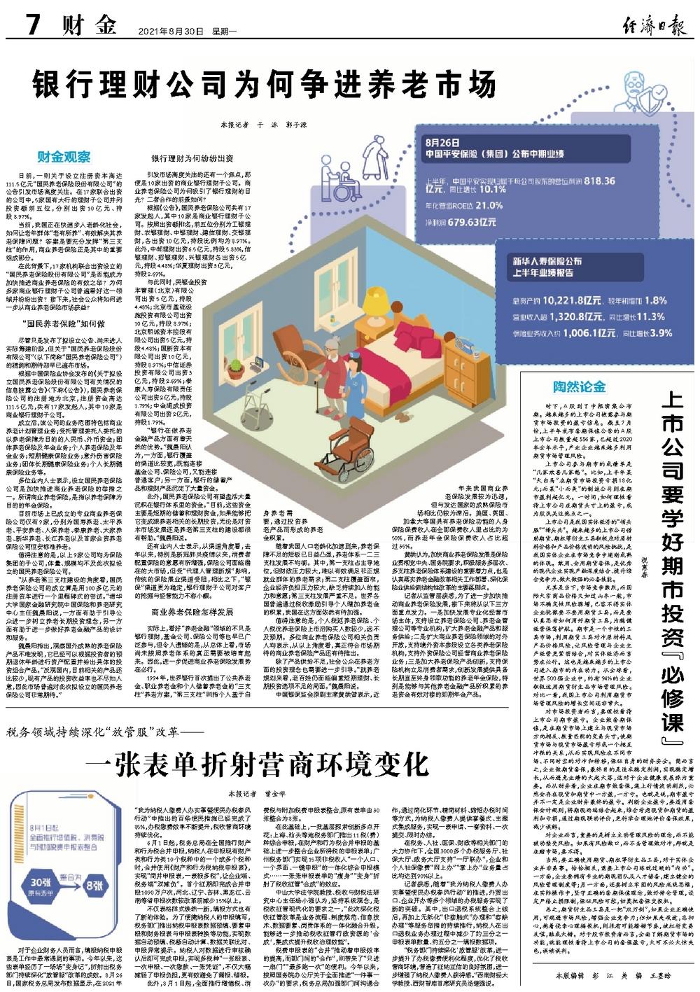 此外,国民养老保险公司有望盘活大量沉积在银行体系里的资金。“目前,这些资金主要是短期的储蓄和理财资金,如果能够把它变成跟养老相关的长期投资,无论是对资本市场发展还是养老第三支柱的建设都很有帮助。”魏晨阳说。