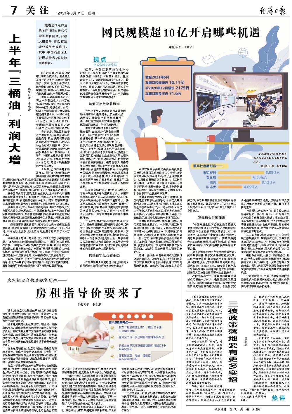 因此,要让三孩政策发挥作用,实现适度生育水平,还需要通过激励相容的政策“组合拳”,减轻育儿焦虑,降低养育成本,构建生育友好型社会。在教育方面,建议政府和社会力量依托社区,提供多样化的婴幼儿照护服务,在此基础上,完善医疗、养老等保障制度,加快保障房供应,推进教育公平与优质教育资源供给,为年轻人减轻育儿经济负担。在提高女性生育积极性方面,建议将生育融入社会机制、政策和环境设计中,推动男性积极分担养育责任,在职场上对多孩妈妈给予更多宽容,从制度上纠正就业歧视行为。