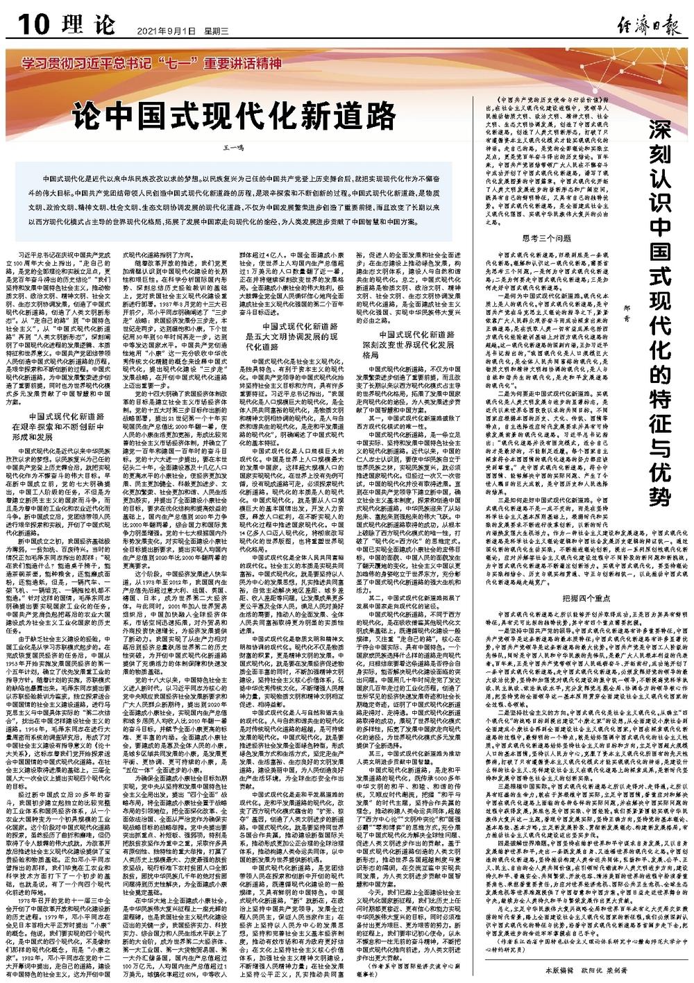 中国式现代化新道路,归根到底是一条现代化新路。理解和认识这一现代化新路,需要首先思考三个问题,一是何为中国式现代化新道路;二是为何要走中国式现代化新道路;三是如何走好中国式现代化新道路。