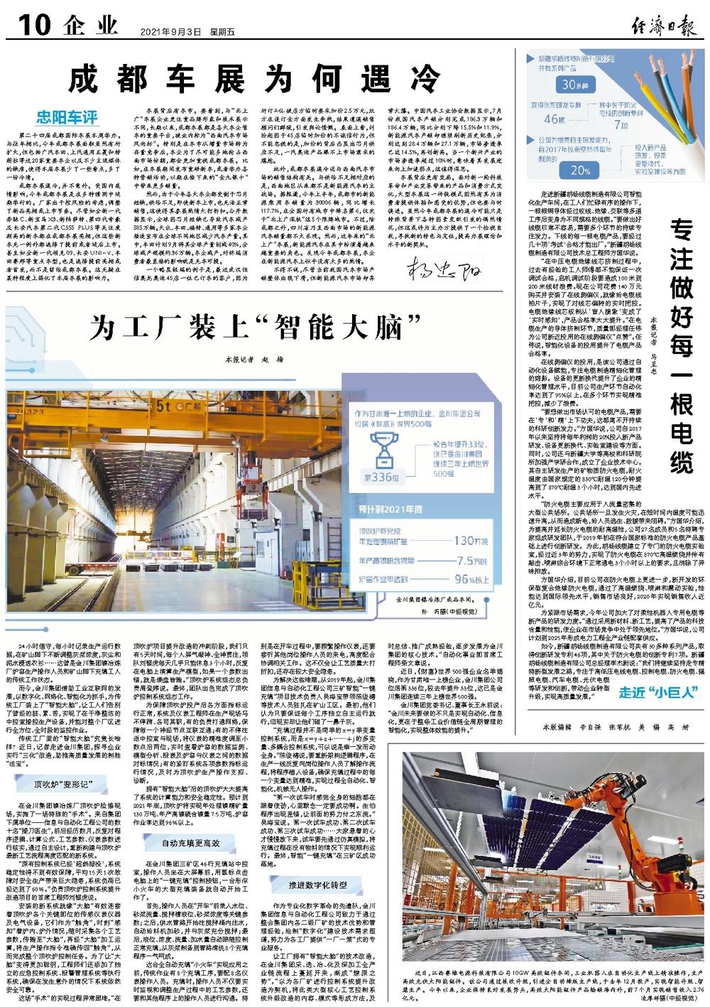 为紧跟市场需求,今年公司加大了对柔性机器人专用电缆等新产品的研发力度。“通过采用新材料、新工艺,提高了产品的科技含量和性能,使企业在市场竞争中处于领先地位。”方国华说,公司计划到2025年形成电力工程全产业链配套供应。