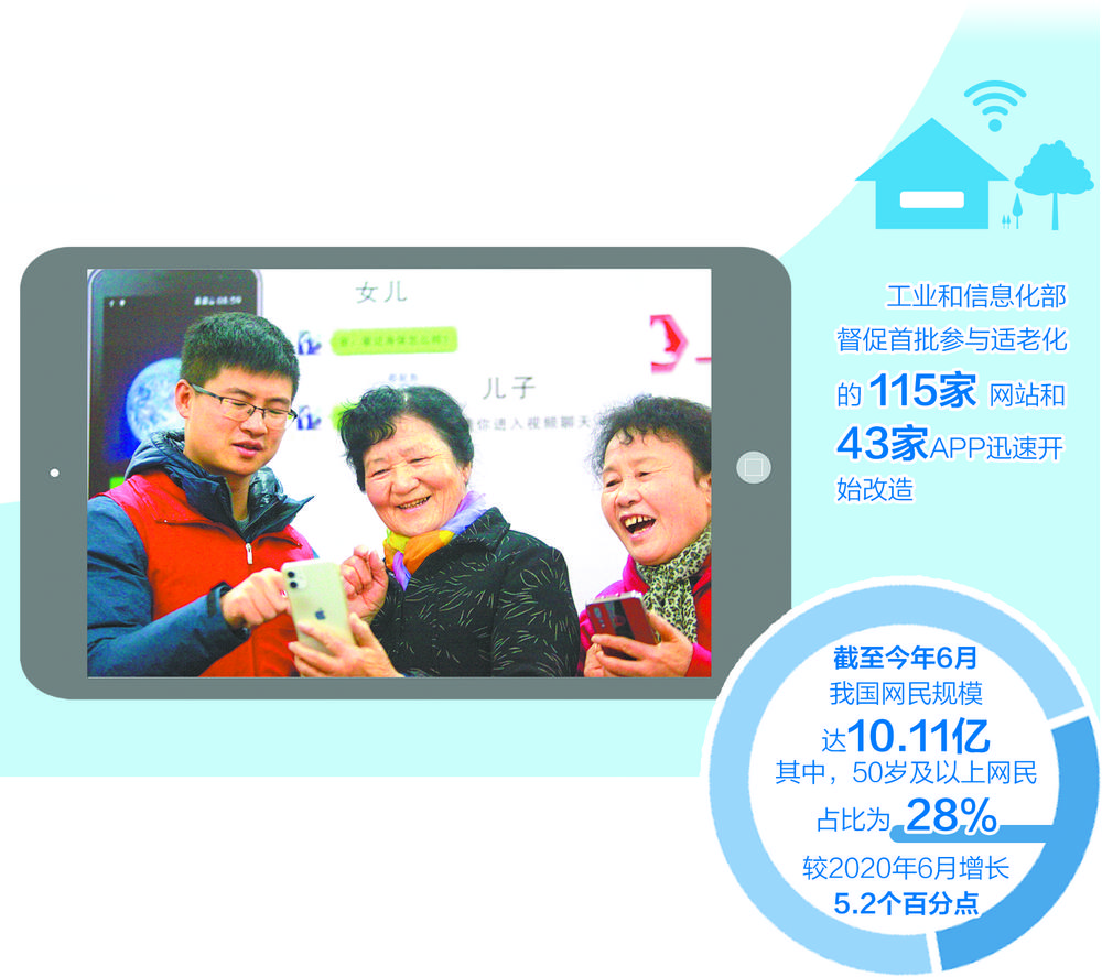 中国互联网络信息中心(CNNIC)日前发布的报告显示,截至今年6月,我国网民规模达10.11亿。其中,50岁及以上网民占比为28%,较2020年6月增长5.2个百分点。