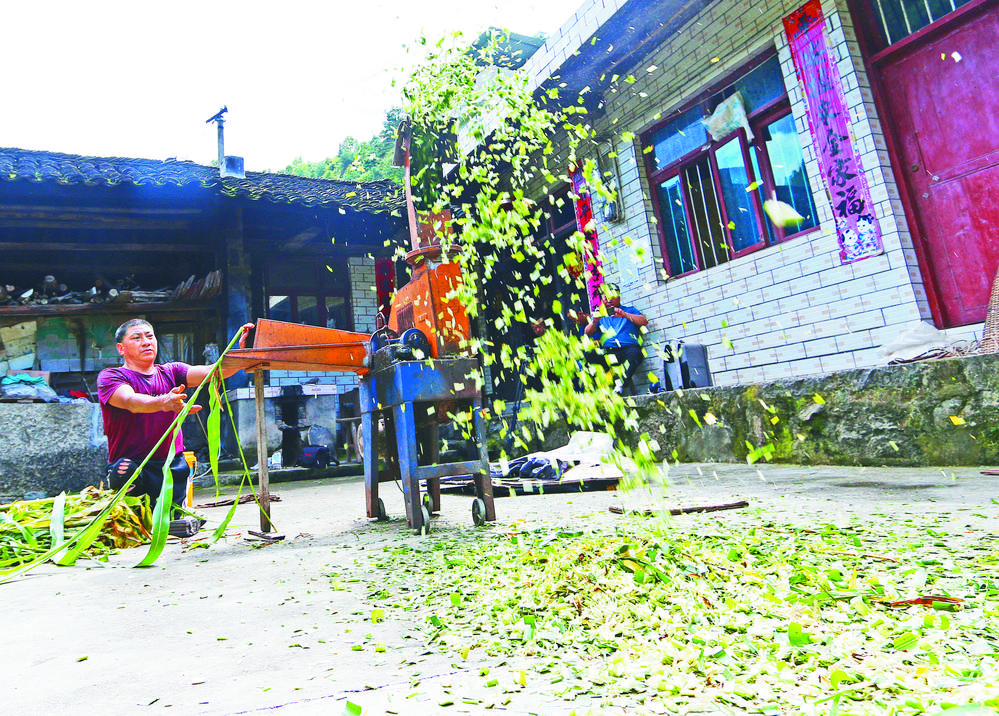 “牛人”奔小康(组图之一)作者 左禹华 2020年7月3日,贵州铜仁市印江土家族苗族自治县沙子坡镇四坳村,村民王昭权在切草料。