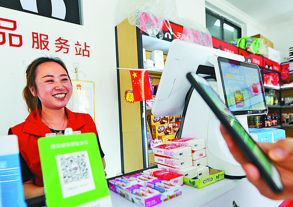 团结村里“乐耕甜”(组图之一) 作者 翟天雪 2020年5月22日,贵州遵义市播州区平正乡团结村电商服务站,“店小二”王帮素在接待顾客。