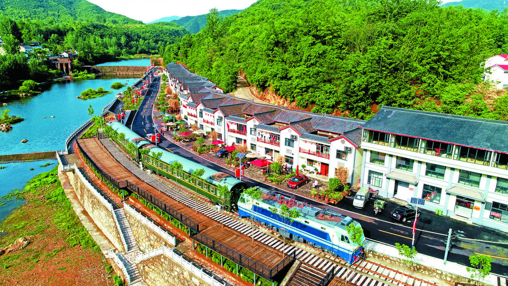 火车来了 作者 王 玮 2020年5月20日,河南栾川县新南村铁路小镇,一列涂装火车和一排徽派建筑风格的农家宾馆格外显眼。