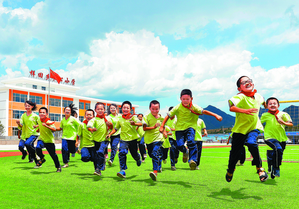 扶贫先扶智 作者 张 昊 2019年7月2日,河北赤城县样田乡中心小学的孩子在新建的绿茵场尽情奔跑。赤城县通过改善学校教育环境、提高教学质量等促进教育发展。