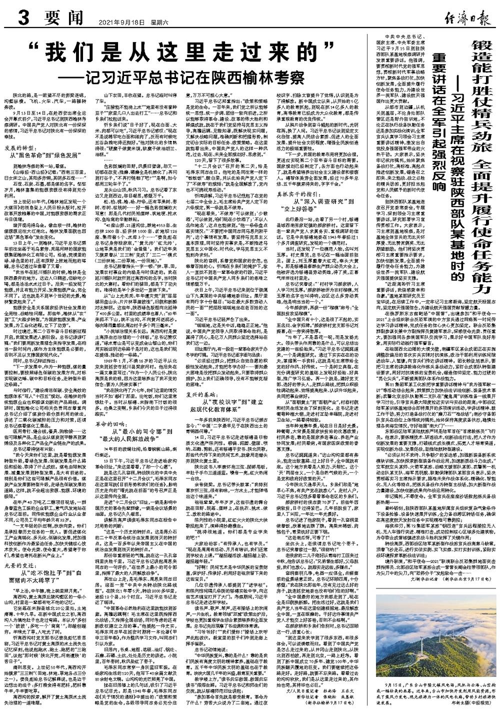 9月13日至14日,在赴西安出席全运会开幕式前夕,习近平总书记到陕西榆林考察调研。中国共产党人对陕北有一份深深的感情,习近平总书记对陕北有一份深深的牵挂。