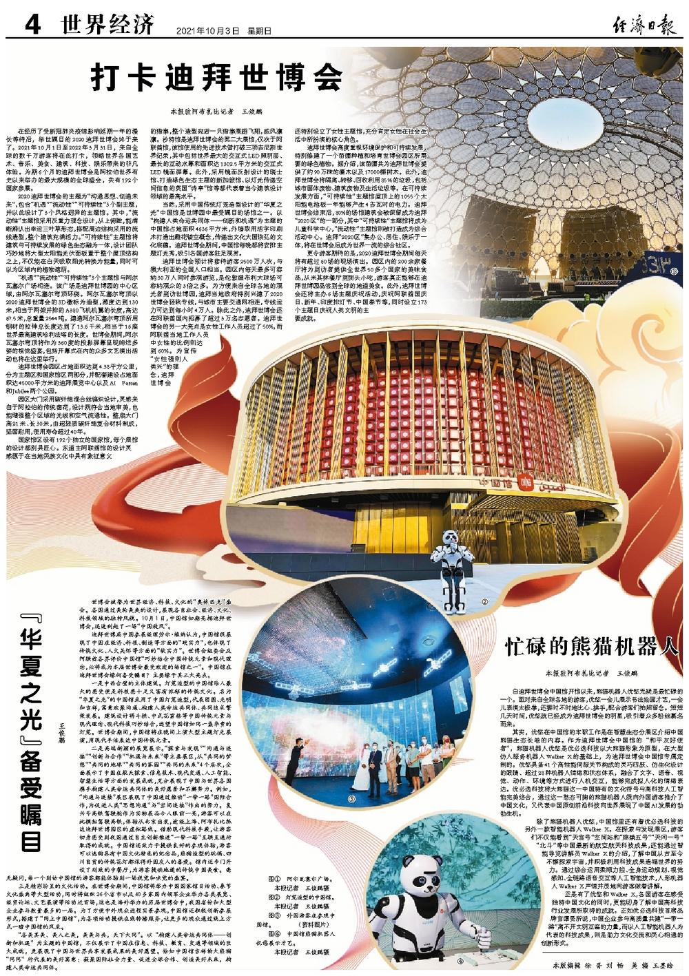 在经历了受新冠肺炎疫情影响延期一年的漫长等待后,举世瞩目的2020迪拜世博会终于来了。2021年10月1日至2022年3月31日,来自全球的数千万游客将在此打卡,领略世界各国艺术、音乐、美食、建筑、科技、娱乐带来的非凡体验。为期6个月的迪拜世博会是阿拉伯世界有史以来举办的最大规模的全球盛会,共有192个国家参展。