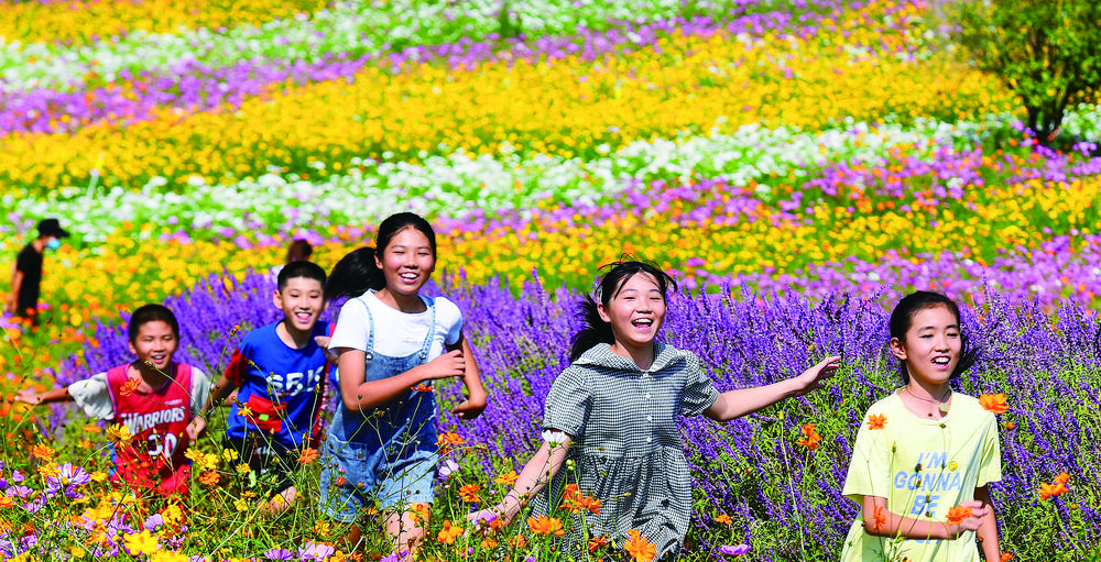 ③10月4日,游客在江西宜丰县黄岗山垦殖场炎岭村九趣乐园赏花游玩,尽享假日快乐。周 亮摄(中经视觉)