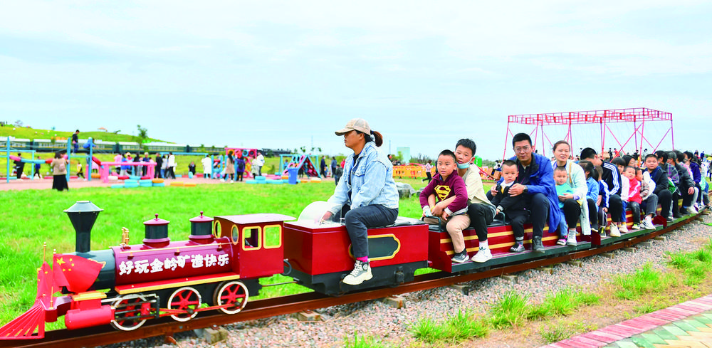 ⑦10月5日,游客在河北迁安市金岭矿山传奇景区乘坐迷你火车游玩,享受假日好时光。梁玉水摄(中经视觉)