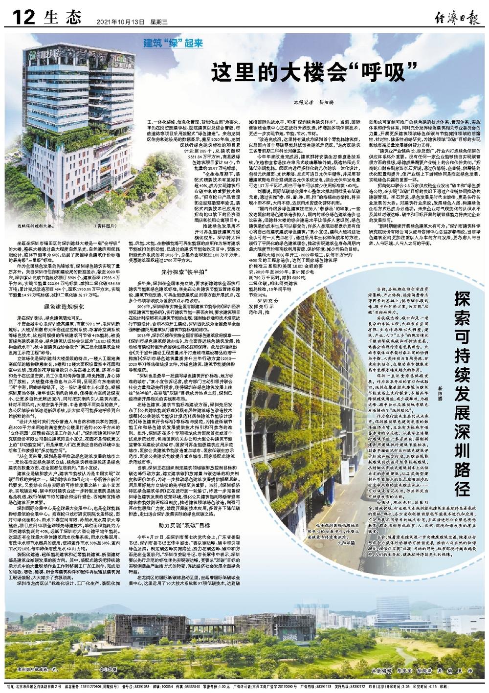 “深圳也是最早一批编写绿色建筑评价标准、地方标准的城市。”袁小宜告诉记者,政府部门主动引领并联合社会力量推动先行探索,使得深圳在绿色建筑发展上往往“快半拍”,在实现“双碳”目标成为热点之前,深圳已经持续开展相关的实践和布局。
