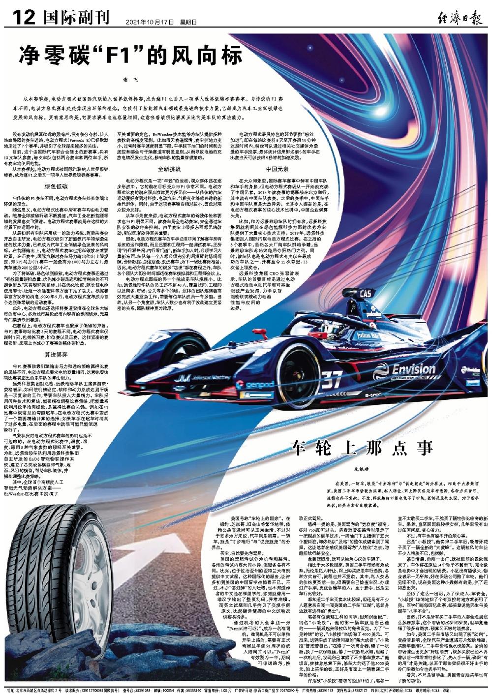 从本赛季起,电动方程式被国际汽联纳入世界级锦标赛,成为继F1之后又一项单人世界级锦标赛赛事。与传统的F1赛车不同,电动方程式赛车处处体现出环保的理念。它吸引了新能源汽车领域最先进的技术力量,已然成为汽车工业低碳绿色发展的风向标。更有意思的是,它要求赛车电池容量相同,这意味着该项比赛真正比的是车队的算法能力。