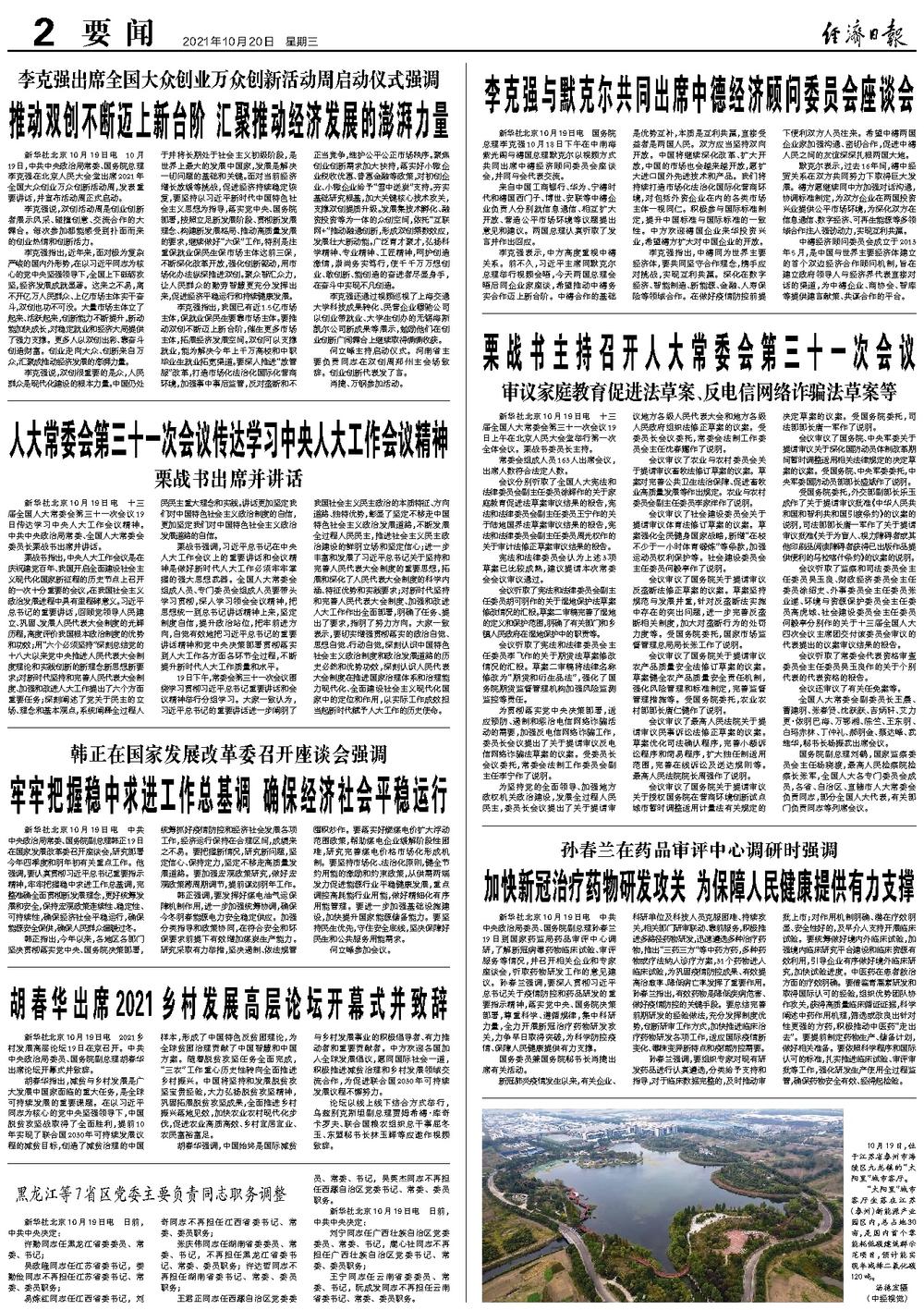 新华社北京10月19日电 十三届全国人大常委会第三十一次会议19日上午在北京人民大会堂举行第一次全体会议。栗战书委员长主持。