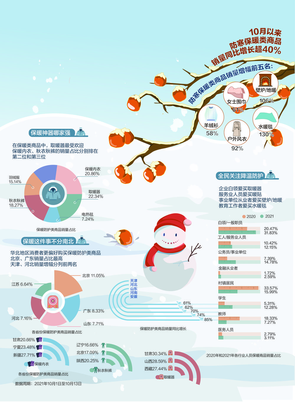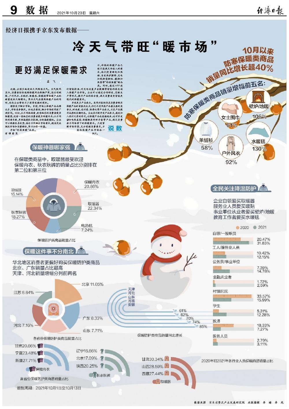 近期,全国多地迎来大风降温天气。天气陡然变冷,消费者纷纷选购保暖用品抵御严寒,这让羽绒服、户外风衣、羊绒衫、取暖器、保暖裤等保暖产品的销量迎来大幅增长。寒冷天气在催热保暖产品的同时,也给企业带来不少有待发掘的商机。