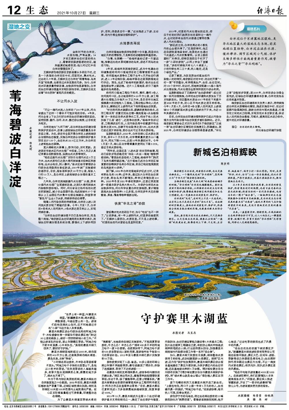 在赛里木湖的克勒涌珠景点,游客争相与嬉戏的天鹅合影。“湖区南边雨水足,播撒草种就能慢慢恢复草场;东边干旱,除了播撒草种,还要上喷灌系统。”赛里木湖管委会资源环境管理局林业工程师阿布都瓦力·阿布力孜正在查看岸边草势:“目前,赛里木景区已累积完成5万多亩裸露地块植被恢复,恢复率接近100%。”