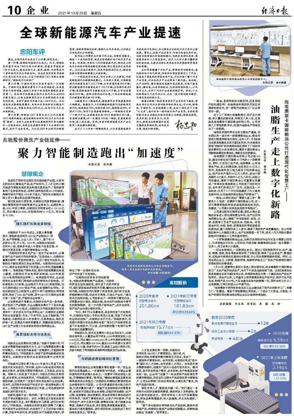 面对复杂的外贸形势,兆驰股份凭借智能制造、精细化管理和技术创新等提升企业竞争力,业绩逆势上扬,2021年前三季度,兆驰股份实现营业收入181.83亿元,同比增长29.69%;实现净利润15.77亿元,同比增长41.83%。
